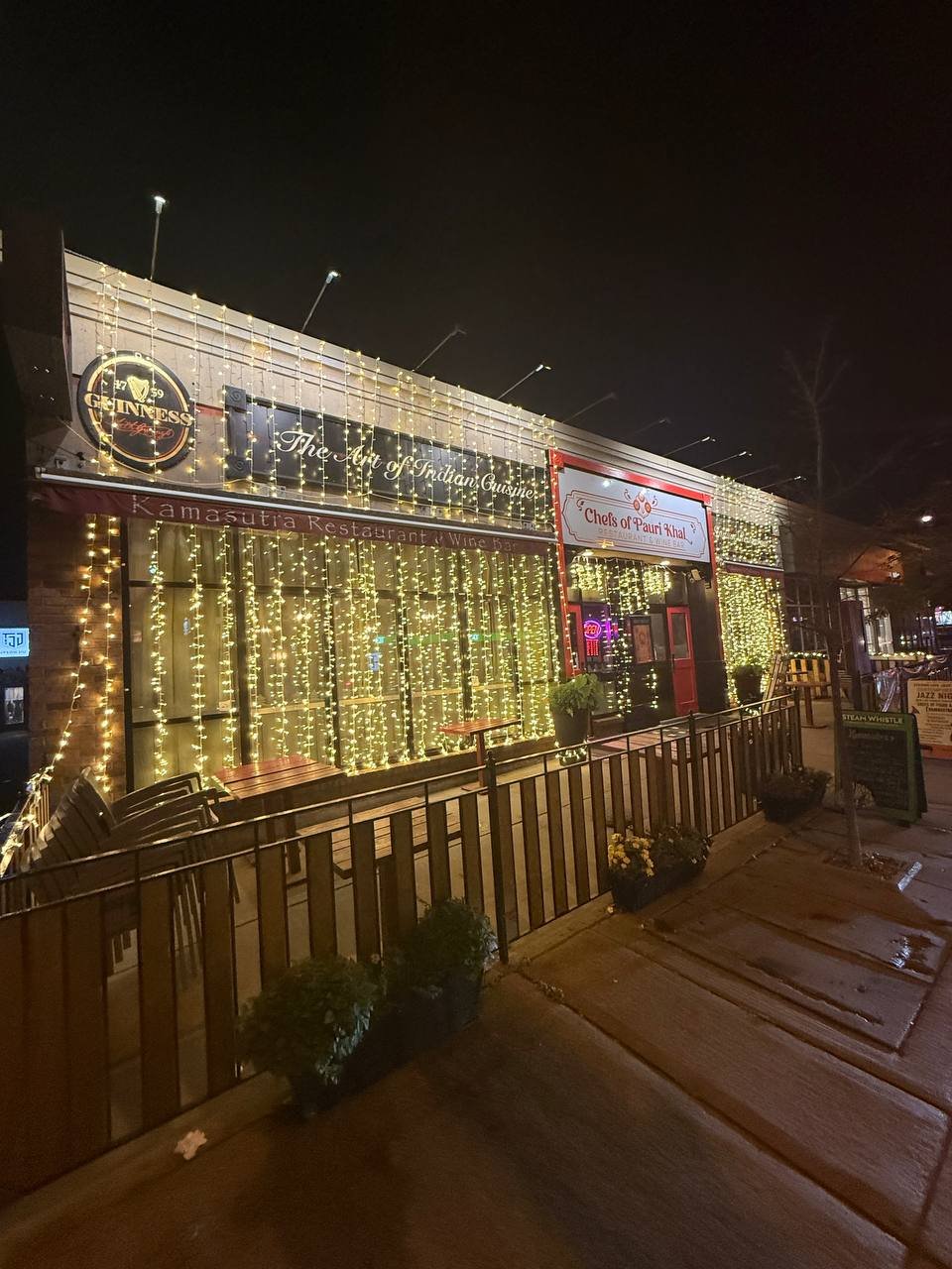 October 21, 2025Restaurant Exterior Renovation – Red Facade, Lighting & Wood Repair