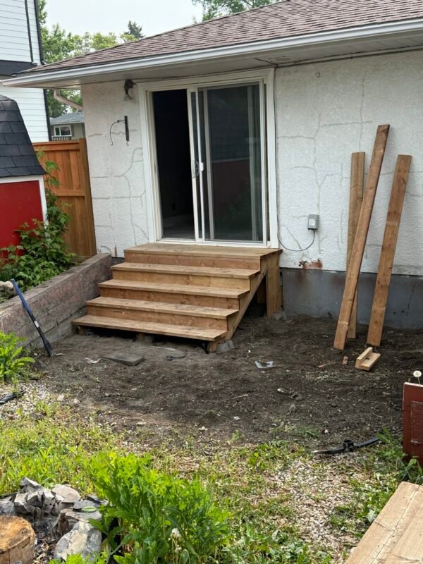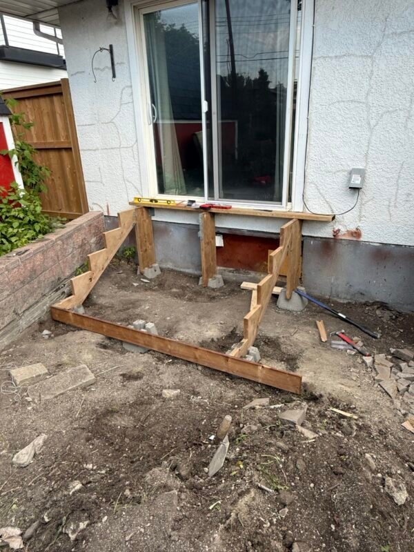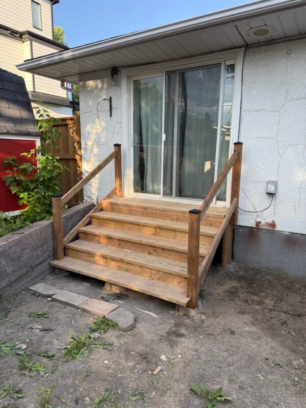 • Scope:  Excavation and concrete footings, framing the stair structure, installing wooden steps, and adding side railings.